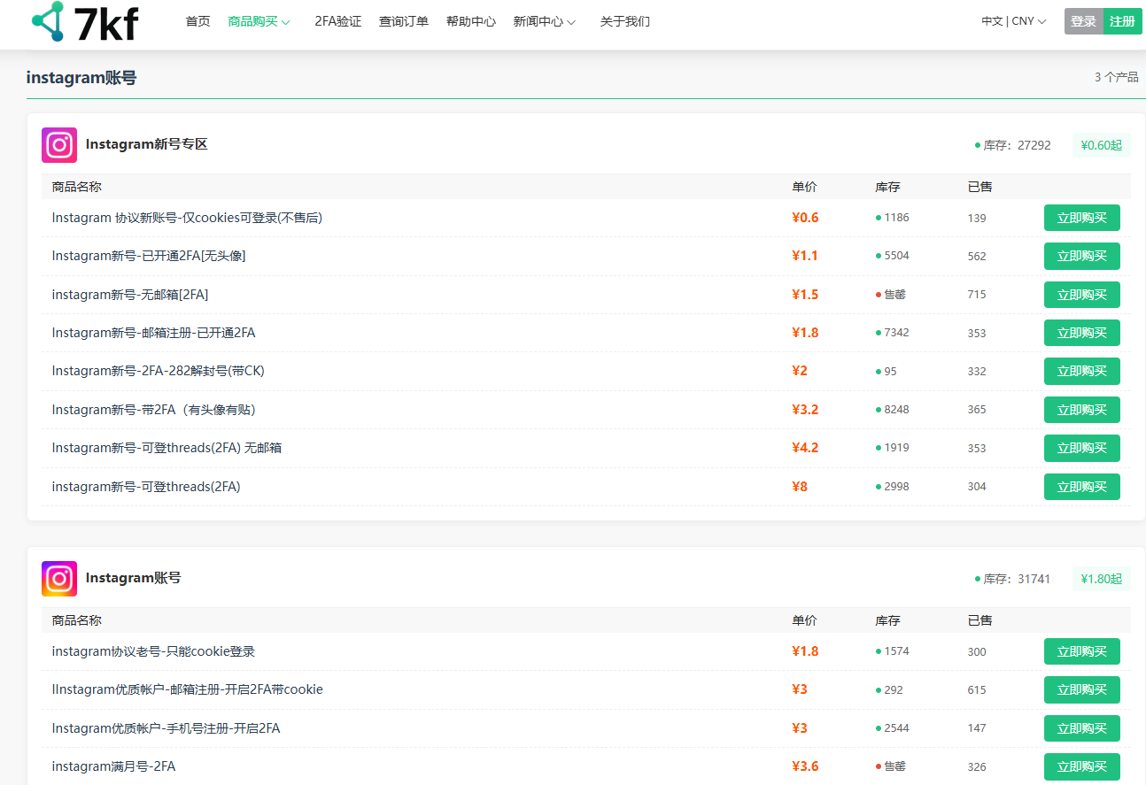 - 对于尚未拥有 Instagram 账号的用户,可在 7KF数字商城 购买。